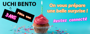 par Uchi BentoL’aventure Uchi Bento a commencé le 1er décembre 2020. Nous allons donc bientôt fêter nos trois ans ! L’actualité va être dense aux mois de novembre et décembre. Nous avons plusieurs annonces à venir et nous vous… Lire la suite : Anniversaire Uchi Bento - Qui sommes-nous ?