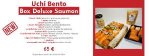 par Uchi BentoLa Box 100% Saumon Composée de différentes pièces dont des , california, maki… Nous utilisons des ingrédients venus d’Asie : – Les 7 épices du Japon , légèrement relevées, apportent une petite touche d’agrumes et de goût… Lire la suite : Nouveauté ! Box Deluxe Saumon - Nouvel An : Box exclusive